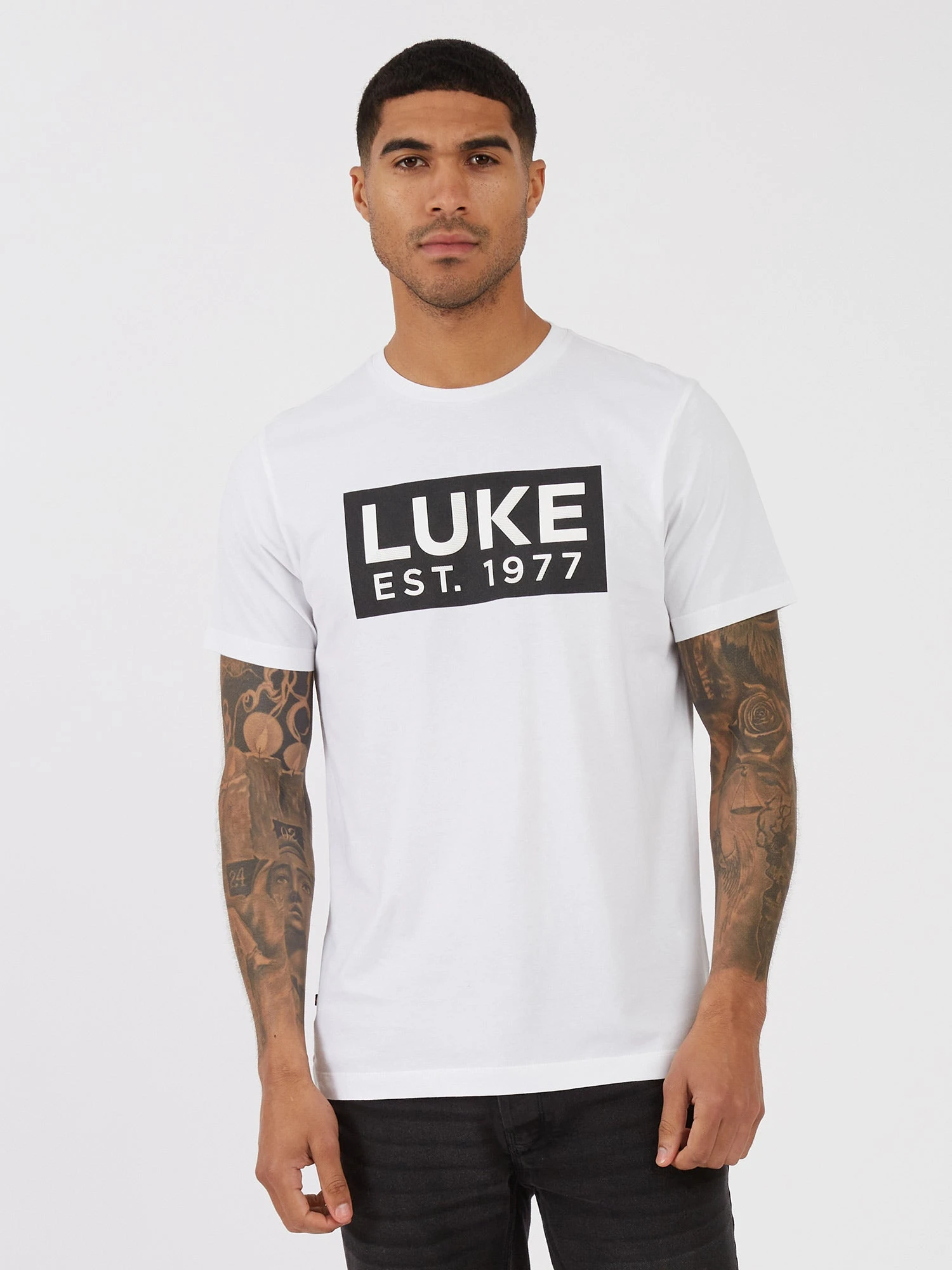 This classic crew neck tee from LUKE is a cool and comfortable addition to your everyday wardrobe. Cut from pure cotton, it features a soft rib crew neck and is detailed with a LUKE EST.1977 raised dot print on the chest.