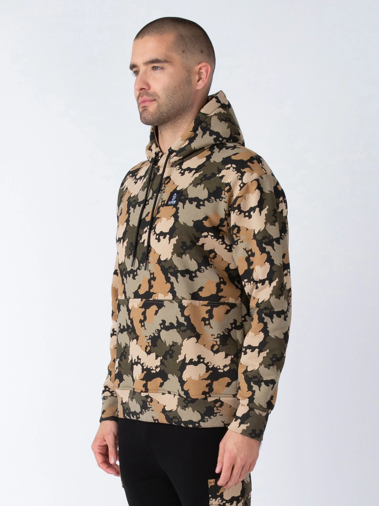 Create a bold look this season with LUKE’s British Goodland Camo printed hoodie. Cut to a relaxed fit and constructed from a comfy cotton blend, it features a cut and sew lower front panel and two handy side pockets, perfect for all your essentials. It is then complete with the brand’s iconic LUKE EST. 1977 woven badge on the left chest.