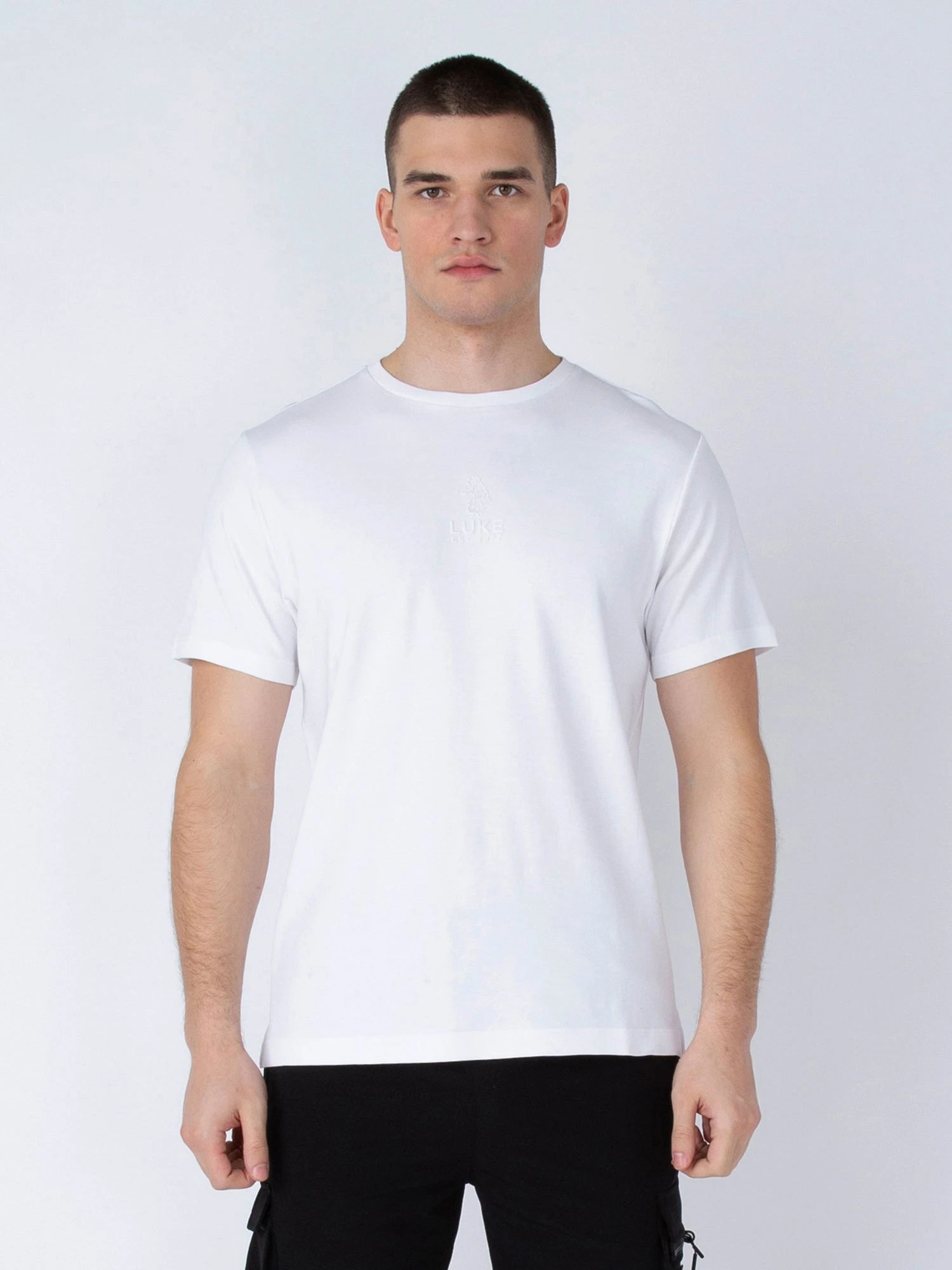 This classic crew neck tee from LUKE is a cool and comfortable addition to your casual wardrobe. Cut from a luxury pure cotton, it is fitted with a soft rib neck and features a LUKE EST. 1977 raised gloss text print at the front.