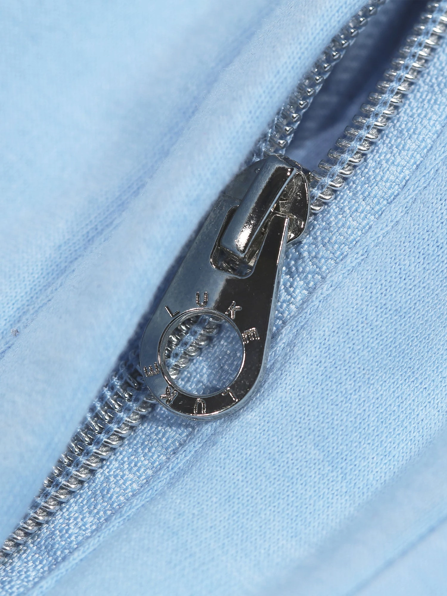 - Chrome metal LUKE zip pullers, eyelets, and cord ends