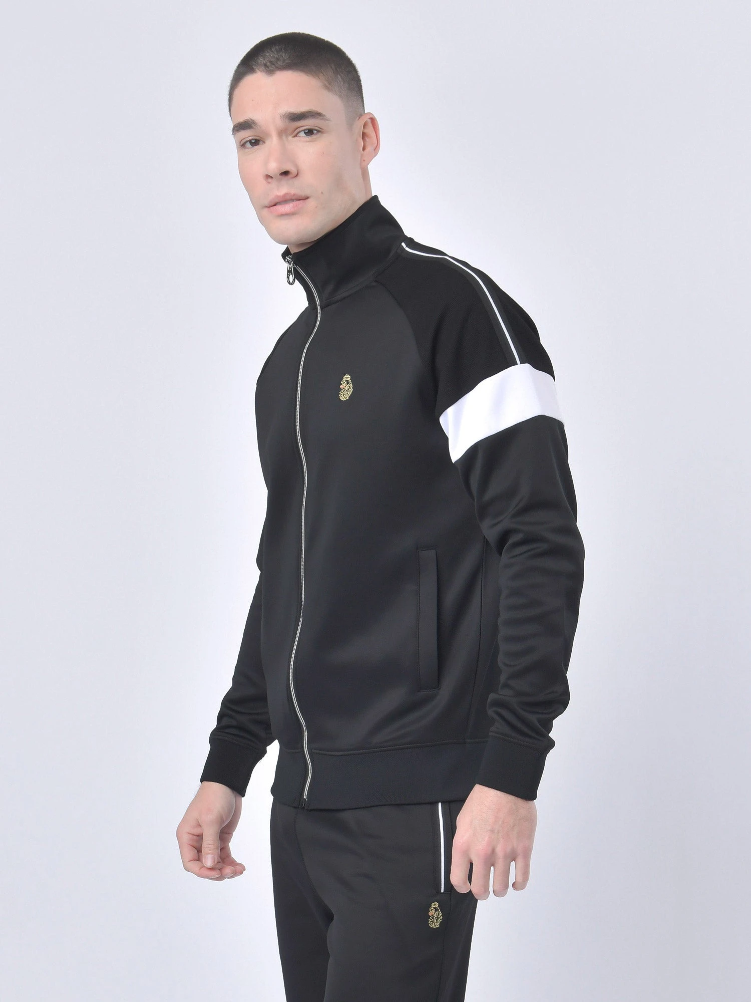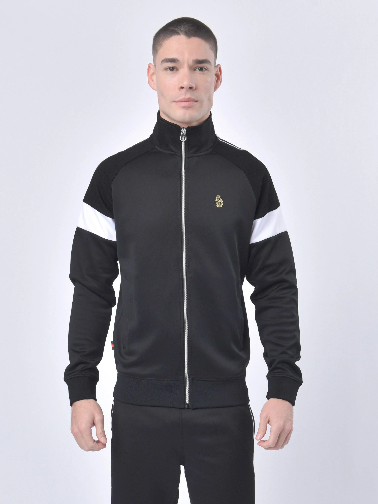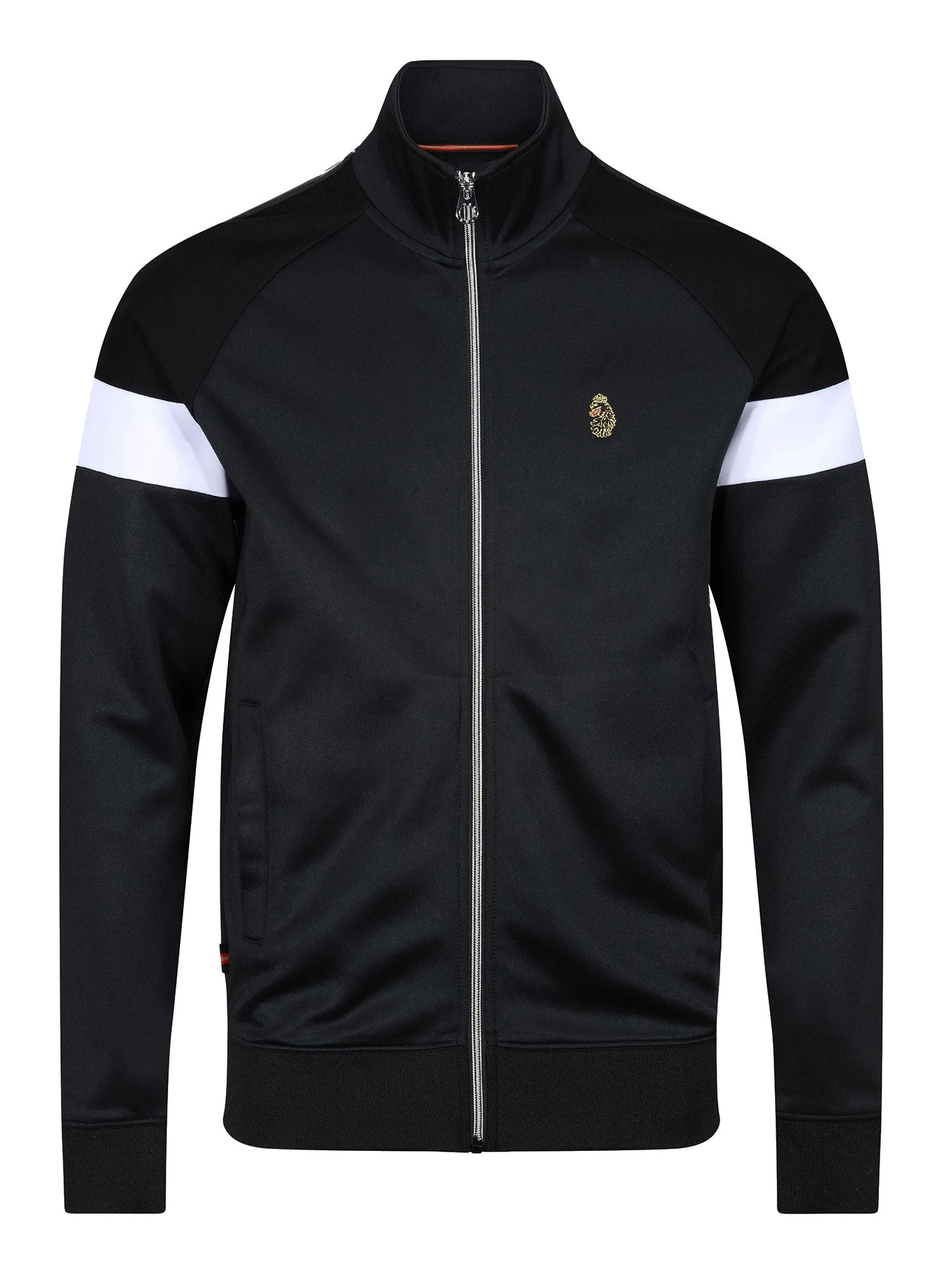 LUKE is your go-to brand for terrace-ready styles and this funnel neck zip through sweat offers just that. It is crafted from a classic tricot, detailed with fabric mix cut and sew panels and features striped tape down the shoulders. It is then complete with rib trims throughout and the brand’s iconic lion head embroidery on the left chest.