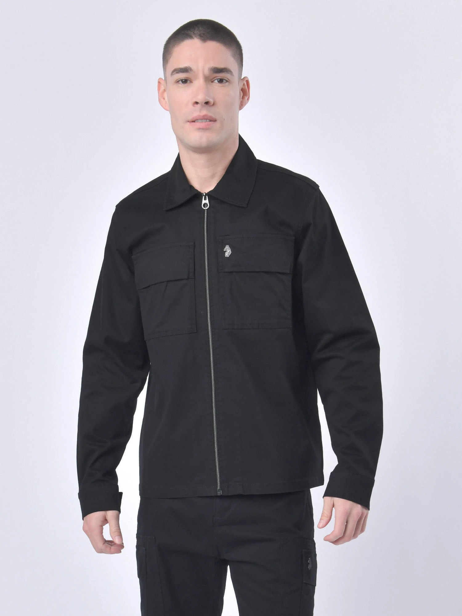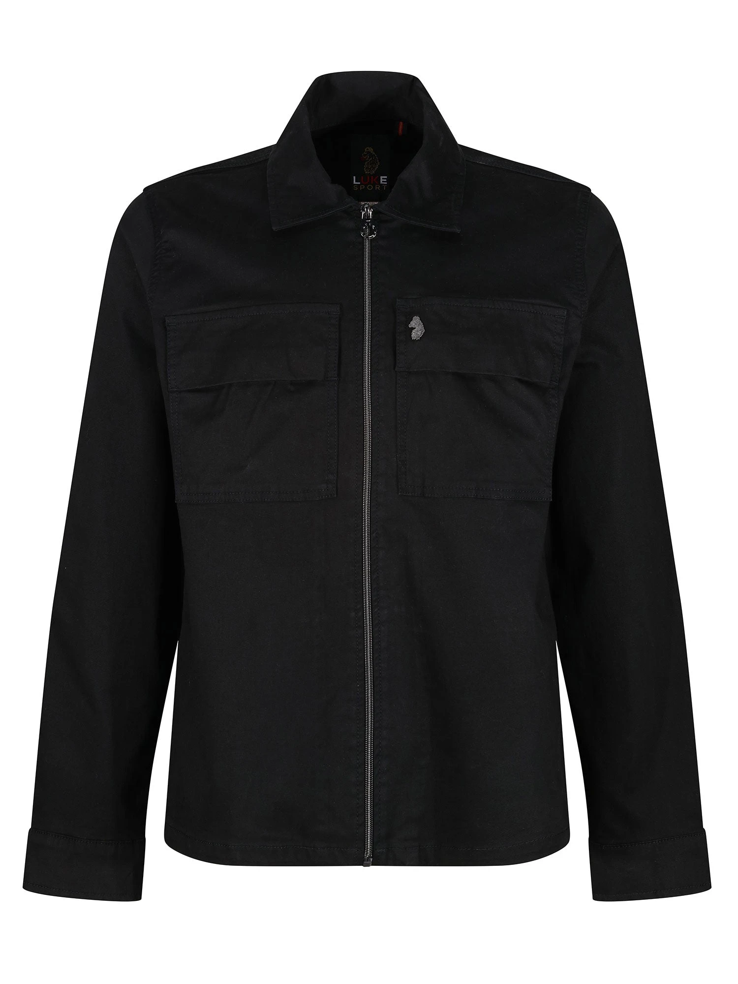 This classic jacket from LUKE centres on the notions of utility, simplicity and style. It is crafted from a durable cotton twill, cut to a boxy fit and features two pockets on the chest. It is fitted with a dark pewter gloss zip closure and is complete with the brand’s iconic lion head rivet on the left chest. Â