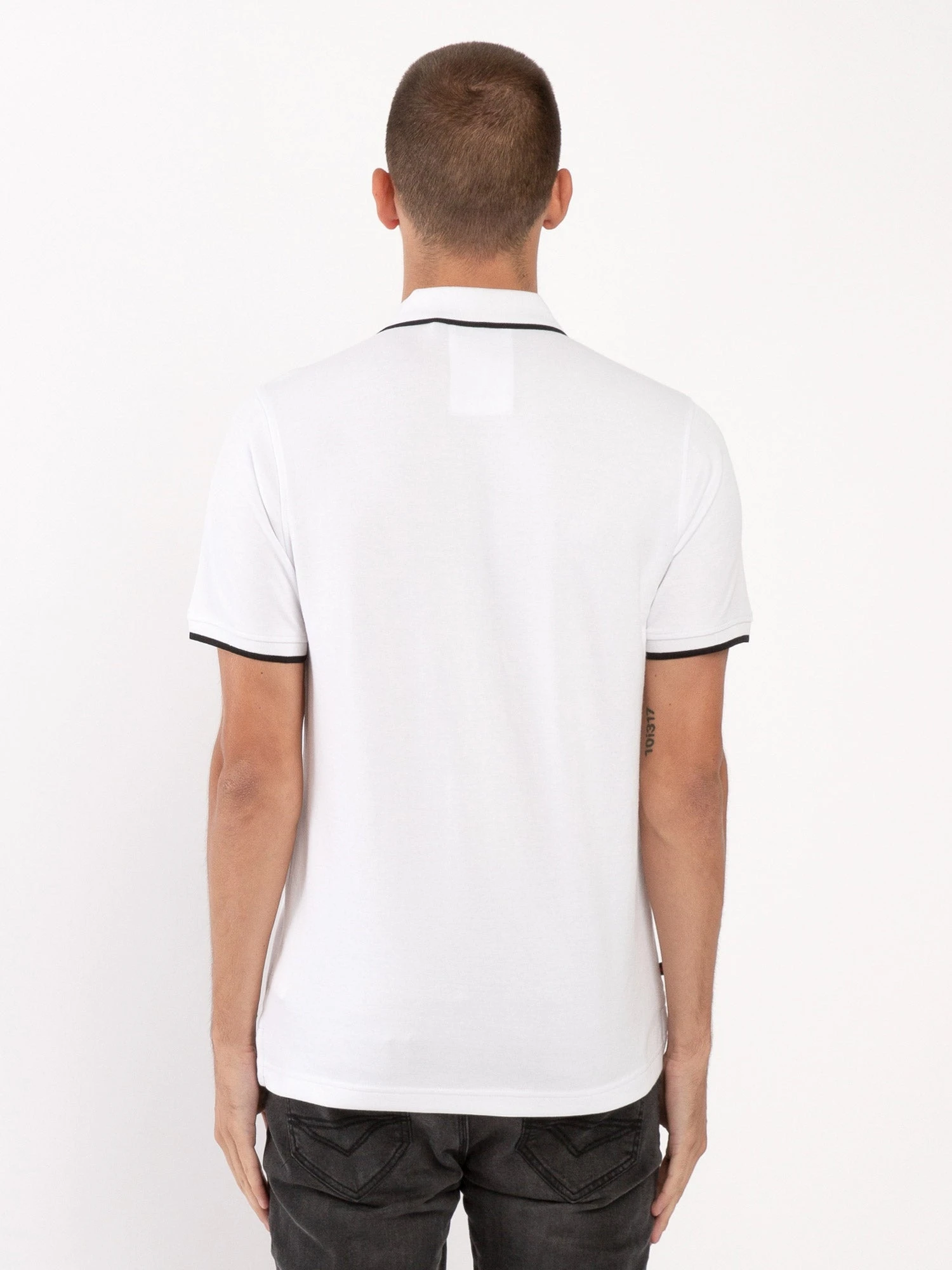 - Rib collar and cuff with contrast tipping