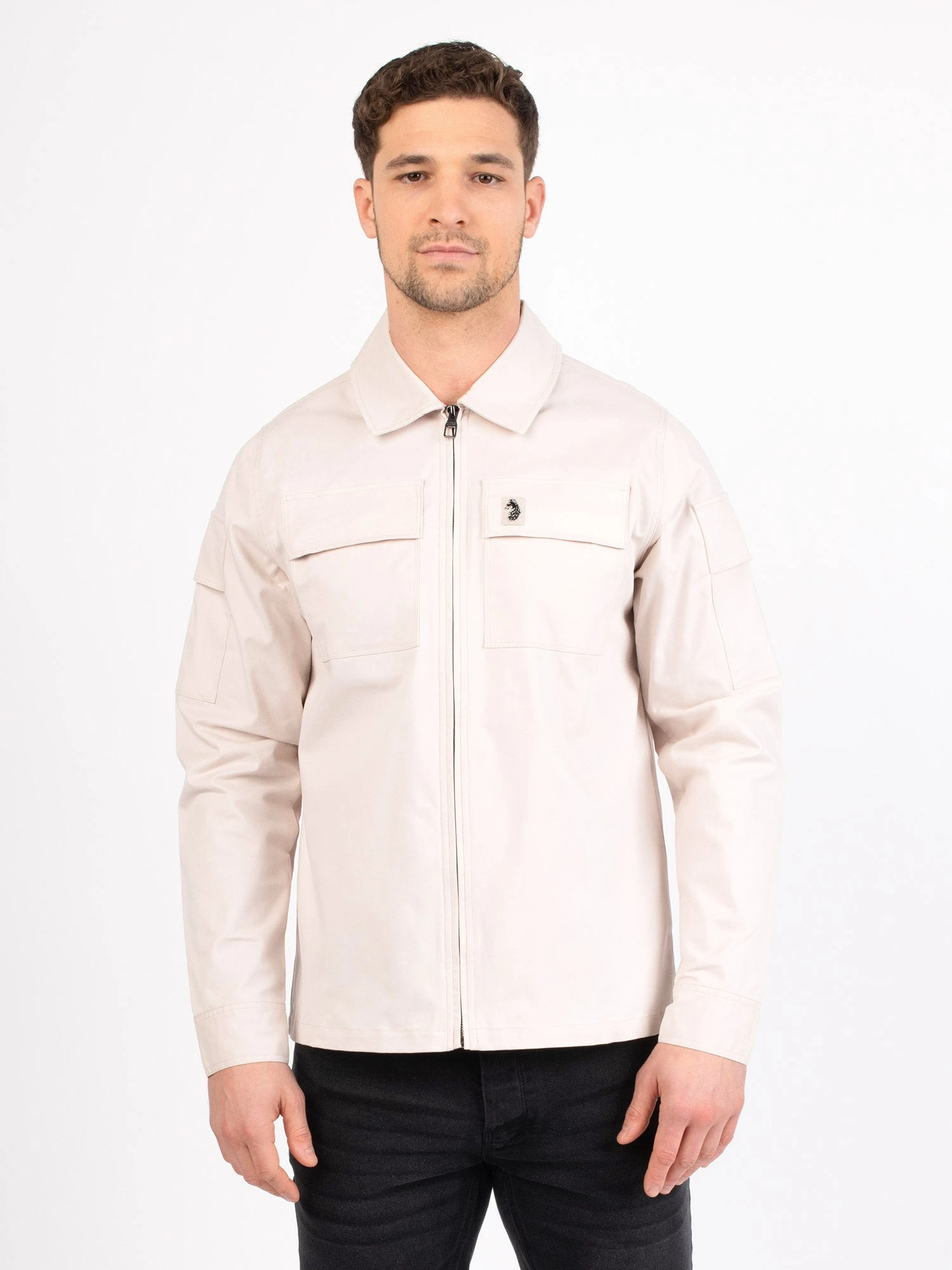 This four pocket detailed jacket from LUKE centres on the notions of utility. It is crafted from cotton twill, cut to a boxy fit and comes equipped with two chest pockets and a pocket on each sleeve. It fastens with a dark pewter gloss centre zip and is complete with the brand’s iconic raised metal lion felt badge on the left chest.
