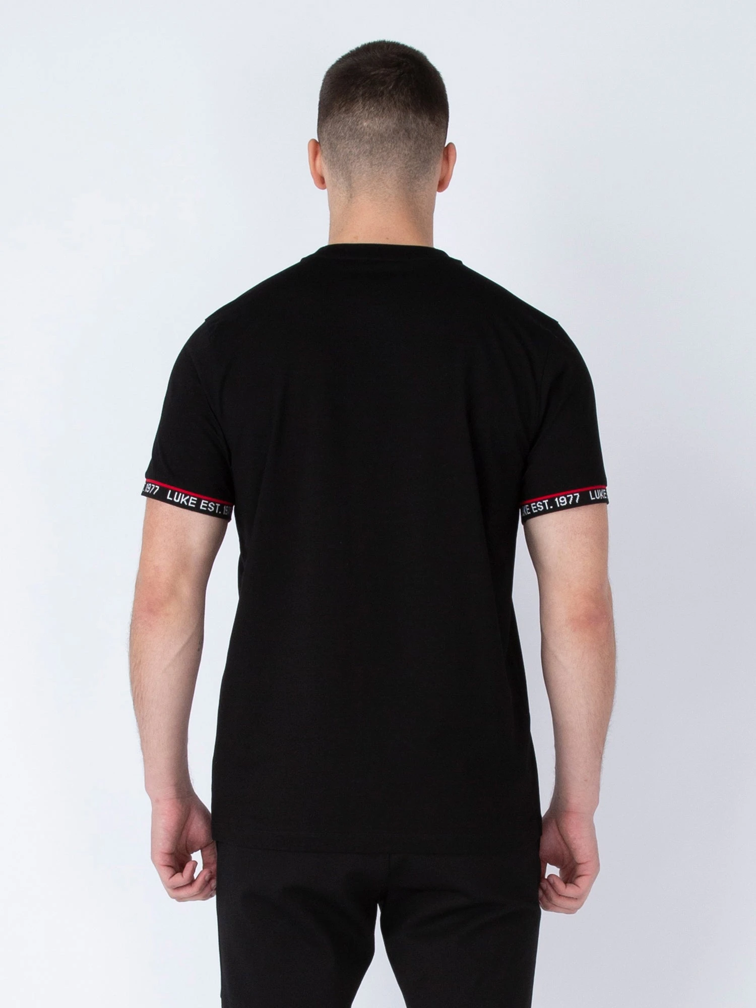 - Rib cuffs with LUKE EST. 1977 text print and red stripe